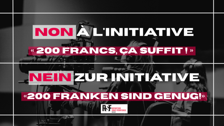 RSF Suisse s’engage résolument pour le « non » à l’initiative visant à réduire de moitié le budget de la SSR 4 février 2026 A la une, actualité, Suisse - Le 8 mars, nous voterons sur l'avenir des médias suisses. L'initiative controversée visant à réduire de moitié le budget de la SSR aurait des conséquences lourdes pour le service public et le journalisme en Suisse. C'est pourquoi nous, RSF Suisse, rejetons catégoriquement cette initiative. Cinq arguments plaident en faveur d'un « non » clair le… En savoir +